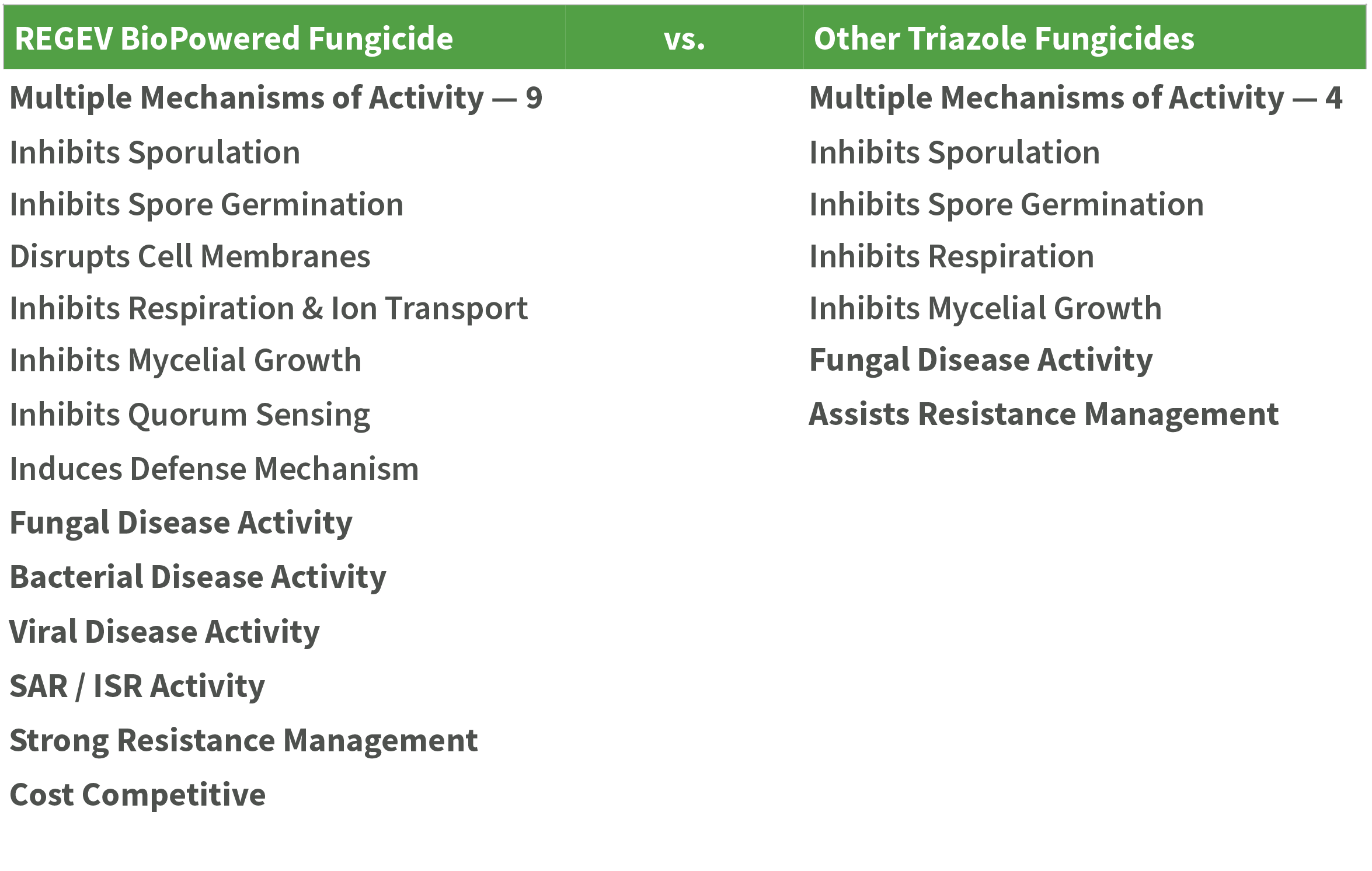 REGEV® UNITES THE DISEASE FIGHTING POWER OF BIOLOGICAL AND CONVENTIONAL CHEMISTRIES FOR THE CONSISTENCY AND PERFORMANCE THAT GROWERS EXPECT.