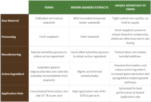 Unlike a typical brown seaweed extract that relies on alginic acid, TARMA utilizes Sulphated Galacto-Oligosaccharides (SGOS), the only patented active ingredient derived from seaplants. SGOS acts synergistically with the seaplant micronutrients featured in TARMA. This triggers gene express for important functions in the crop, up regulating specific plant growth pathways. This leads to: