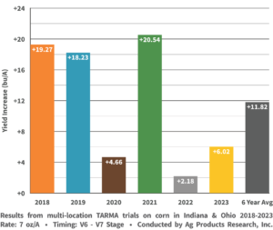 In a 2022 Seymour, IN corn trial, TARMA showed an increase of over 21 bushels of corn vs. the untreated.